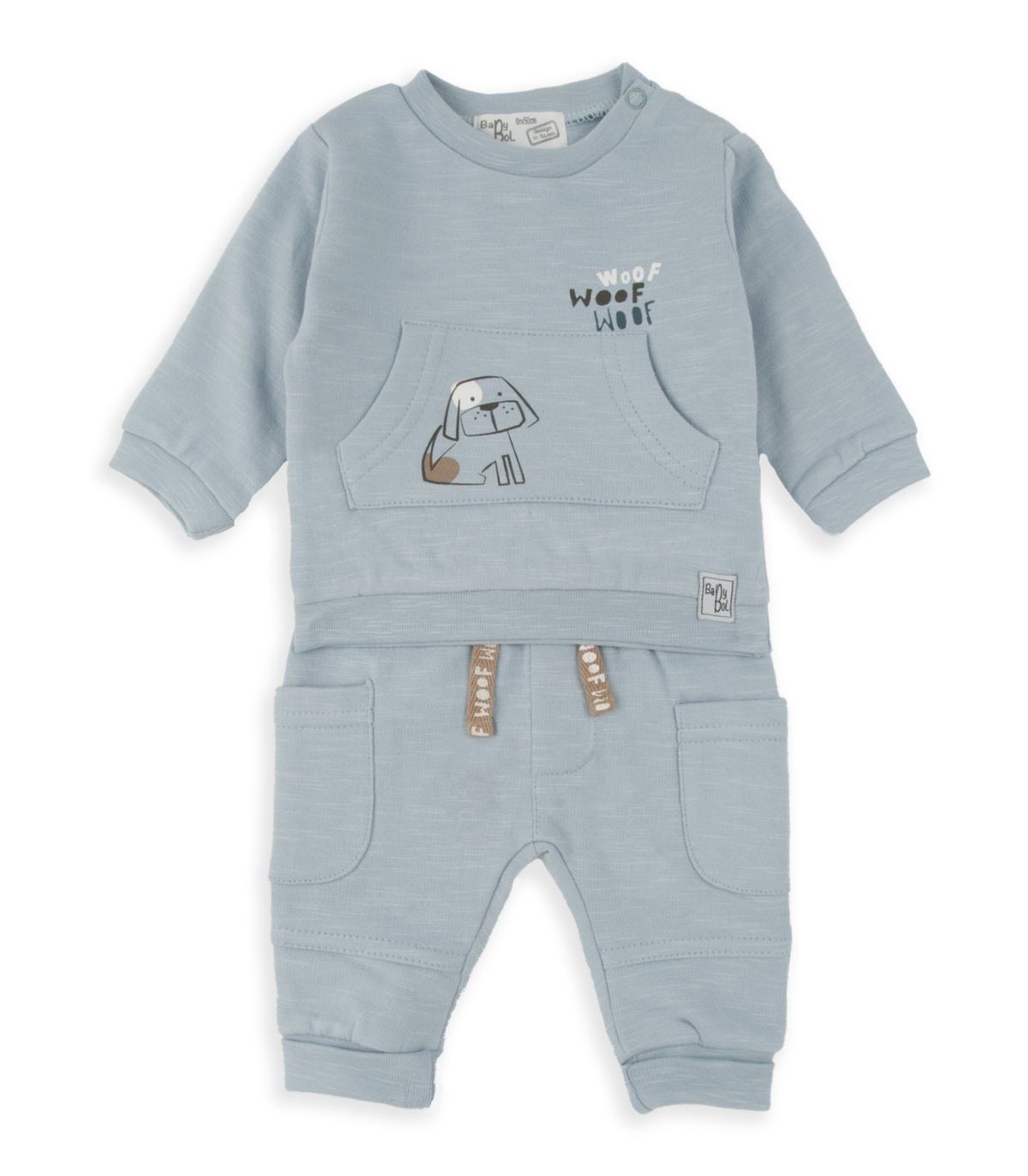 Chándal para bebé de la colección otoño-invierno, confeccionado en tejido suave y cómodo, ideal para el día a día. La sudadera de manga larga con cuello redondo incluye abertura en el hombro con cierres a presión para facilitar la puesta, y como detalle, un práctico bolsillo en el delantero. El pantalón a juego, con cintura elástica para un ajuste perfecto, cuenta con bolsillos laterales que aportan un toque funcional y moderno. Un conjunto versátil y confortable para la temporada.