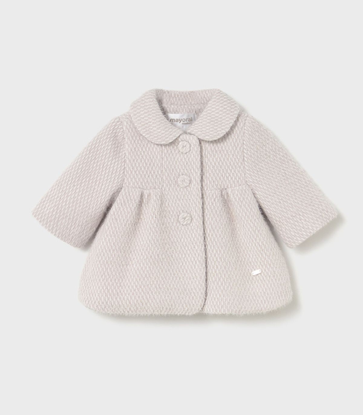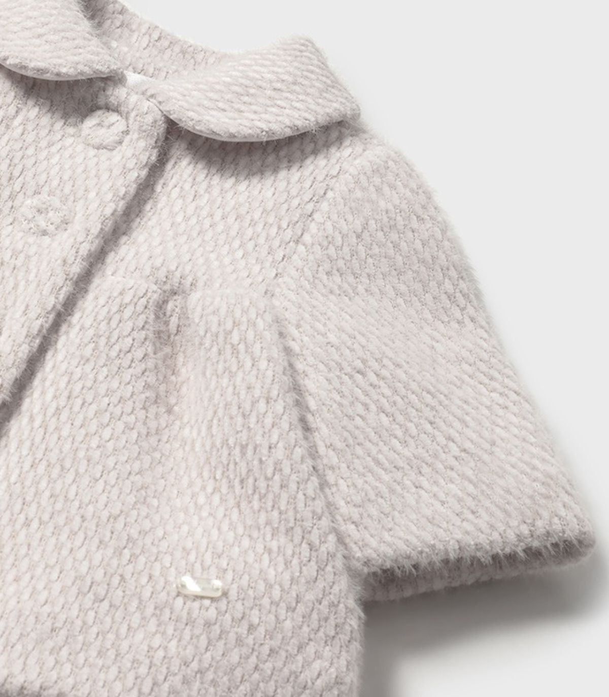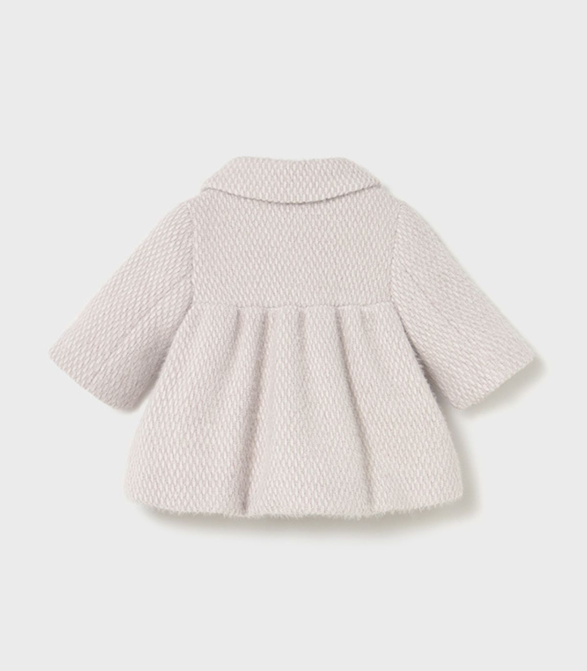 Abrigo para bebé niña de la colección otoño invierno de Mayoral, confeccionado en un tejido suave y calentito ideal para los días fríos. Con cuello bebé que aporta un aire clásico y elegante, se abrocha en la parte delantera con botones. El interior viene totalmente forrado en un tejido cálido para mayor confort. Una prenda perfecta para mantener a la pequeña abrigada sin renunciar al estilo.