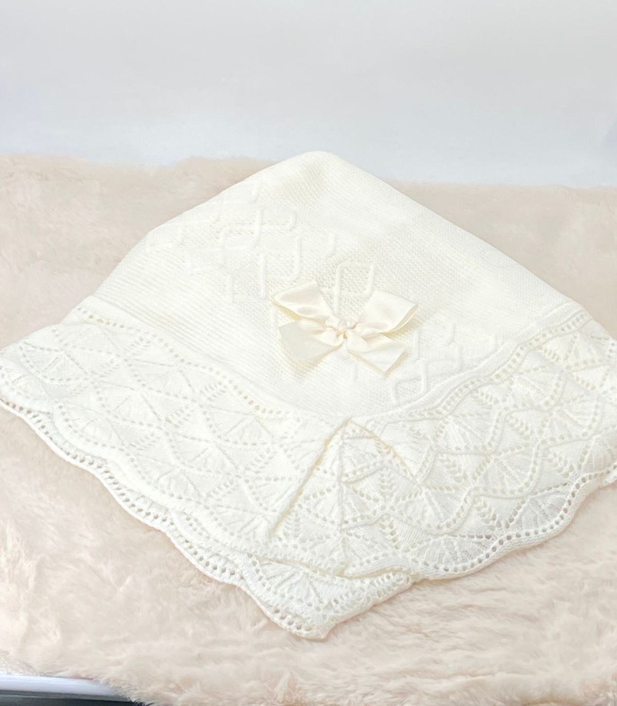 La toquilla chal de invierno para bebés y recién nacidos es la opción perfecta para mantener a tu pequeño tesoro cálido y cómodo en los días fríos. Confeccionada en suave punto tricot en tono crudo y decorada con un encantador volante calado, esta toquilla es una combinación de estilo y calidez que hará que tu bebé luzca hermoso y se sienta acogido.