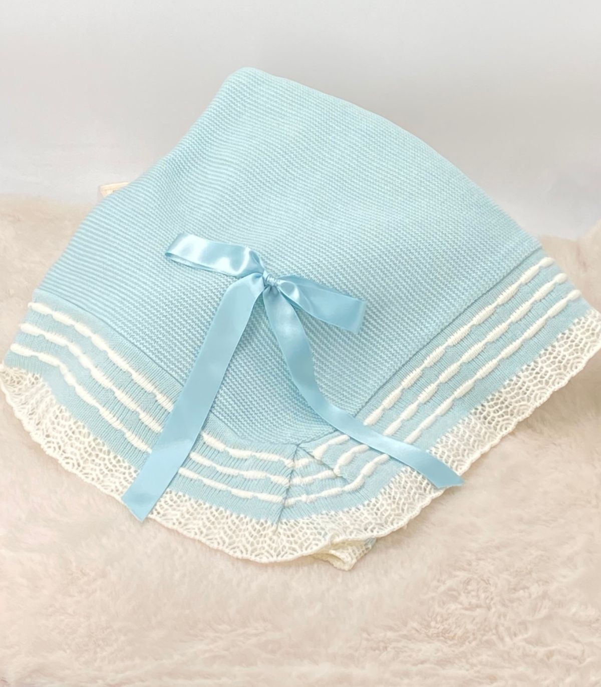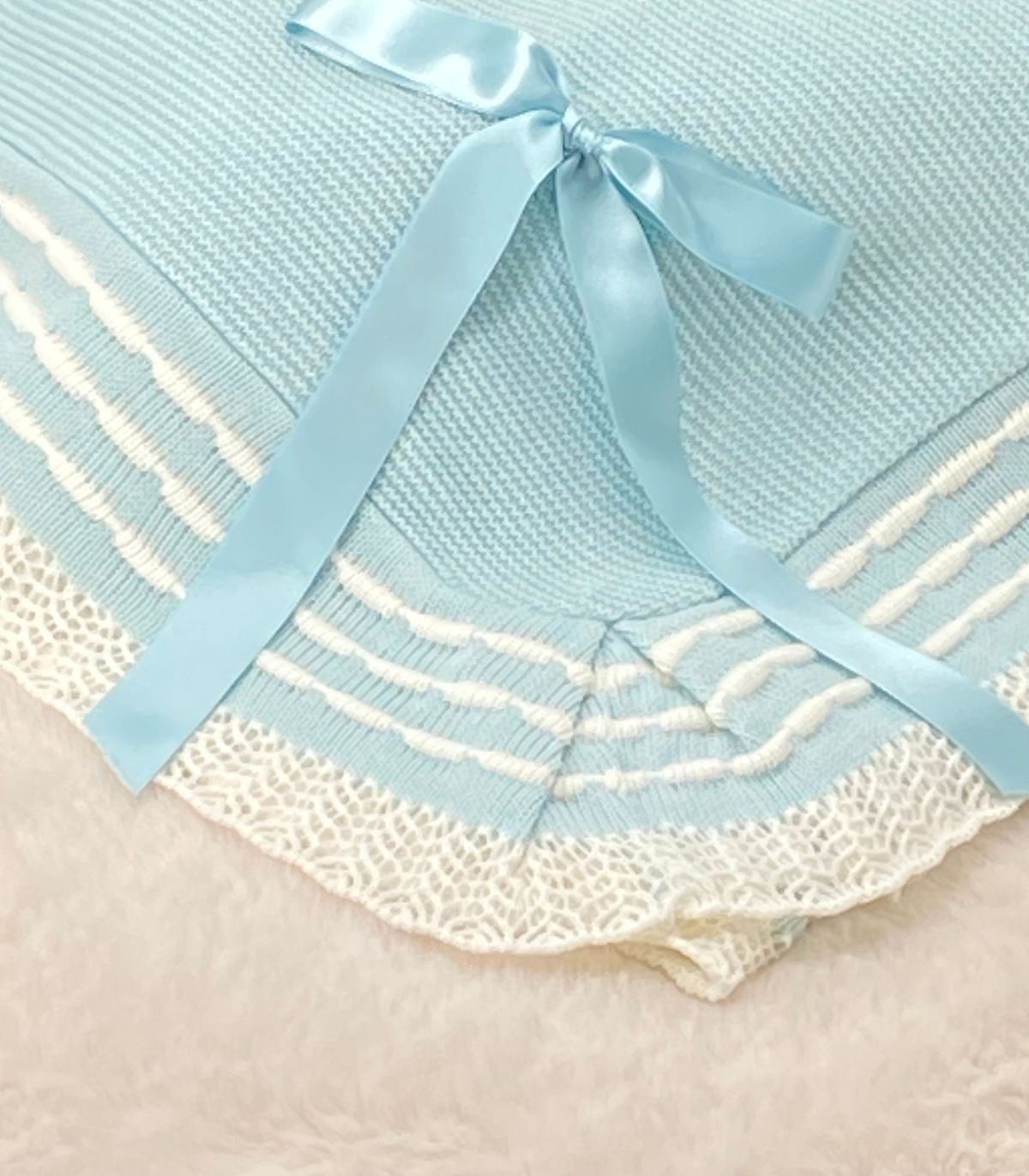 La toquilla chal de invierno para bebés y recién nacidos es la opción perfecta para mantener a tu pequeño tesoro cálido y cómodo en los días fríos. Confeccionada en suave punto tricot en tono verde agua y crudo y decorada con un encantador volante calado, esta toquilla es una combinación de estilo y calidez que hará que tu bebé luzca hermoso y se sienta acogido.