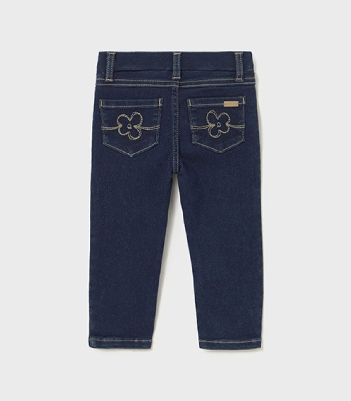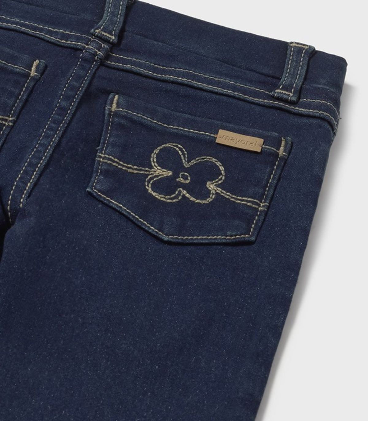 Pantalón de tejido vaquero para niña de la colección otoño invierno de Mayoral. De corte ajustado, confeccionado en tejido elástico para mayor comodidad, con cintura elástica y ajustable en el interior para un ajuste perfecto. Cuenta con bolsillos en la parte trasera y un diseño moderno y versátil, ideal para combinar con cualquier look de temporada.
