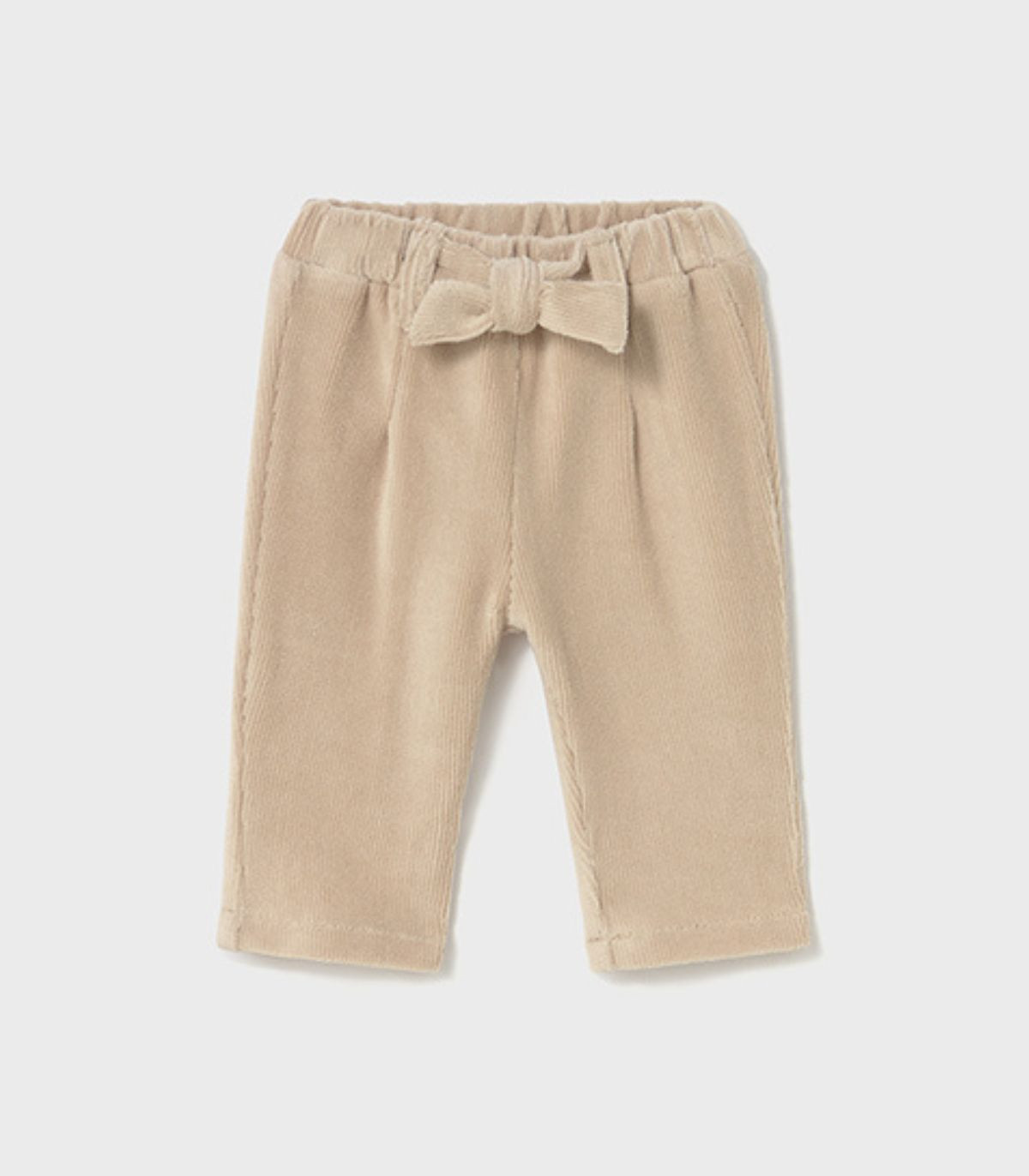 Pantalón para bebé niña de la colección otoño invierno de Mayoral, confeccionado en un cálido tejido de punto pana, muy suave y cómodo para los días fríos. Con cinturilla elástica para un ajuste perfecto y pinzas en la parte delantera que aportan un toque de estilo. Como detalle decorativo, incluye un bonito lazo en la cintura. Un pantalón ideal para combinar con cualquier conjunto de temporada.