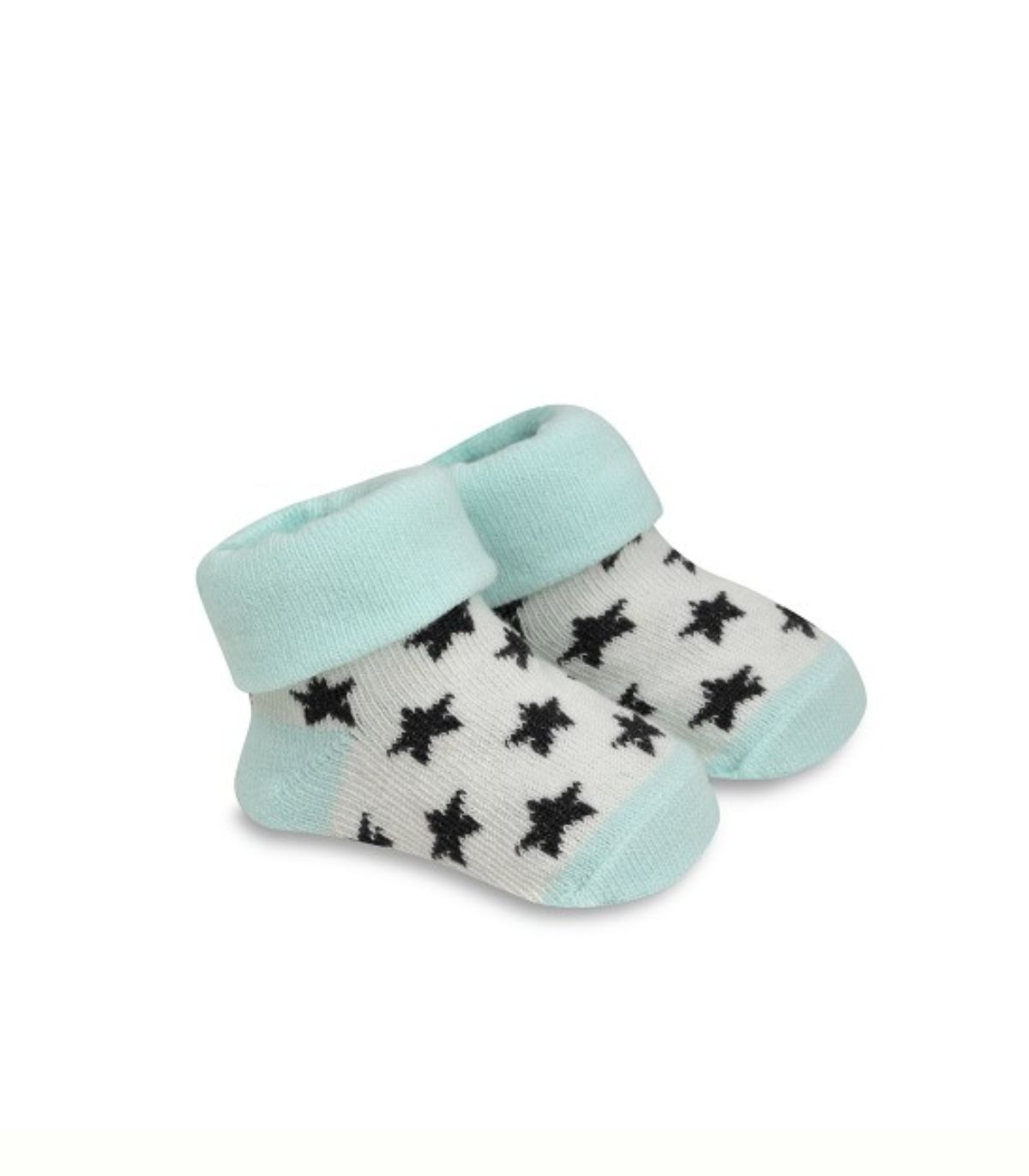 Preciosa cajita ideal para detalles de recién nacido. La cajilla viene con gorrito, dou dou, babero y calcetines con tiernos estampados infantiles.