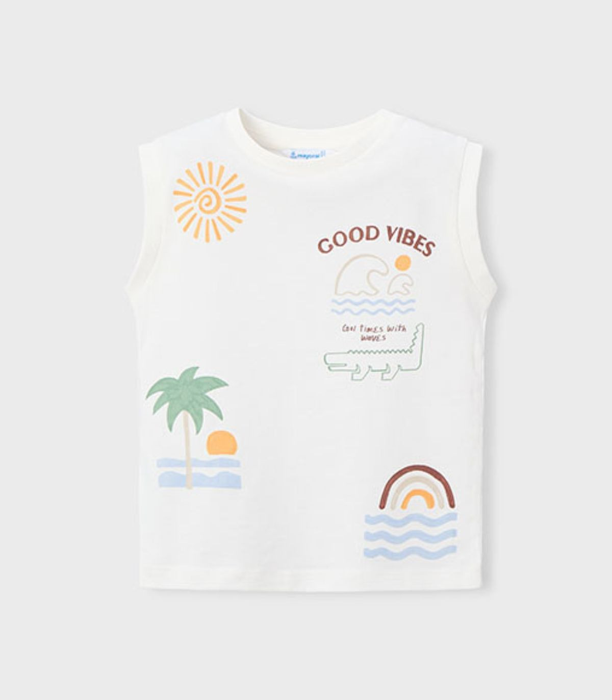 Conjunto de 3 piezas en punto para niño de Mayoral confeccionado en algodón suave y cómodo. Incluye pantalón corto con cintura elástica, dos bolsillos laterales y uno trasero, además de dos camisetas: una de manga corta y otra sin mangas. Ambas presentan motivos estampados con diseño surf en el delantero, aportando un estilo desenfadado y veraniego. Un conjunto práctico y versátil para el día a día dentro de nuestra selección de moda infantil. En Confetti Bebé seleccionamos cada prenda con cuidado y la preparamos con mimo para que la recibas como se merece.