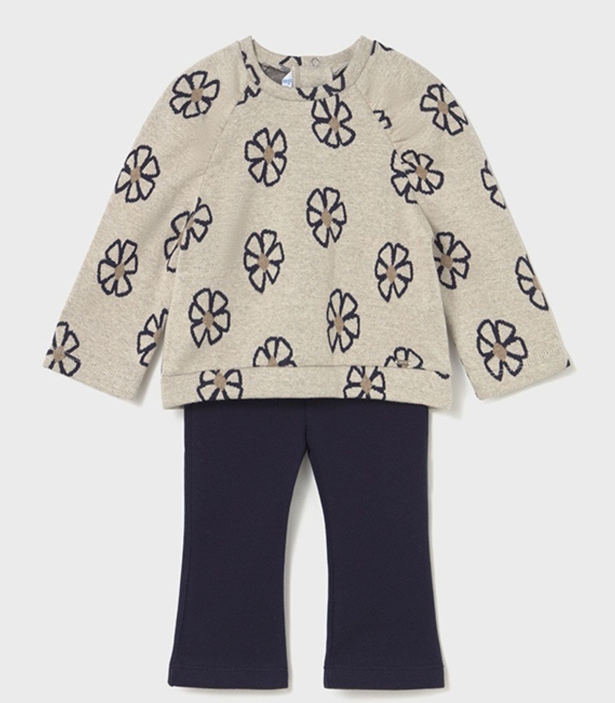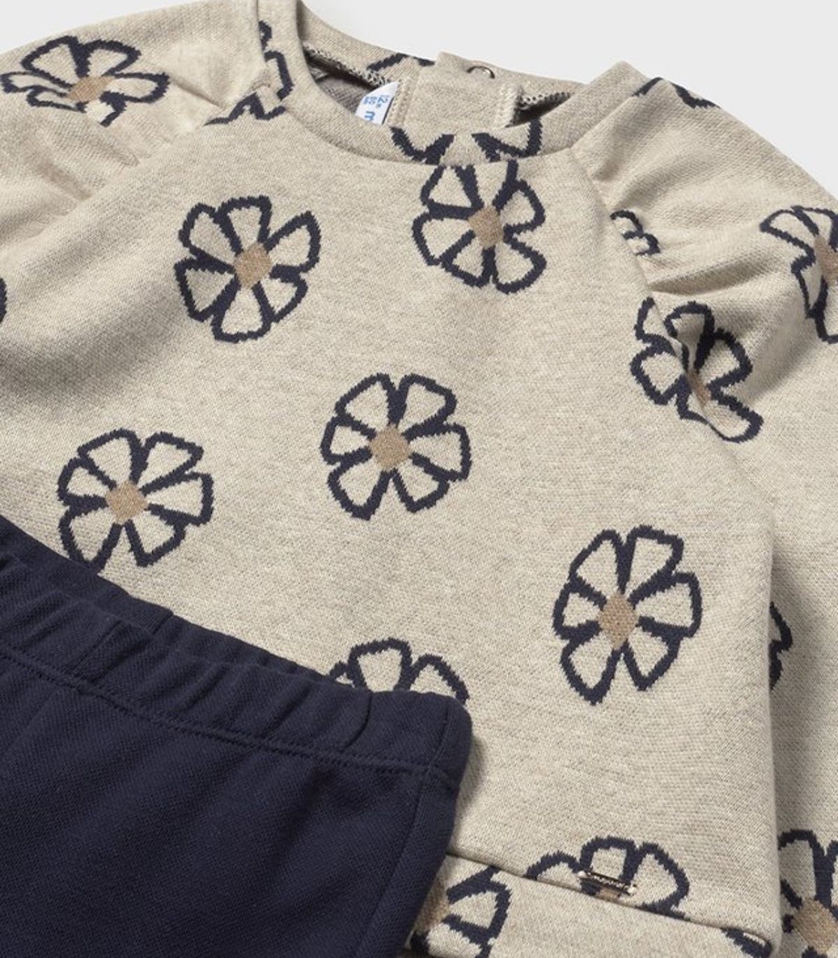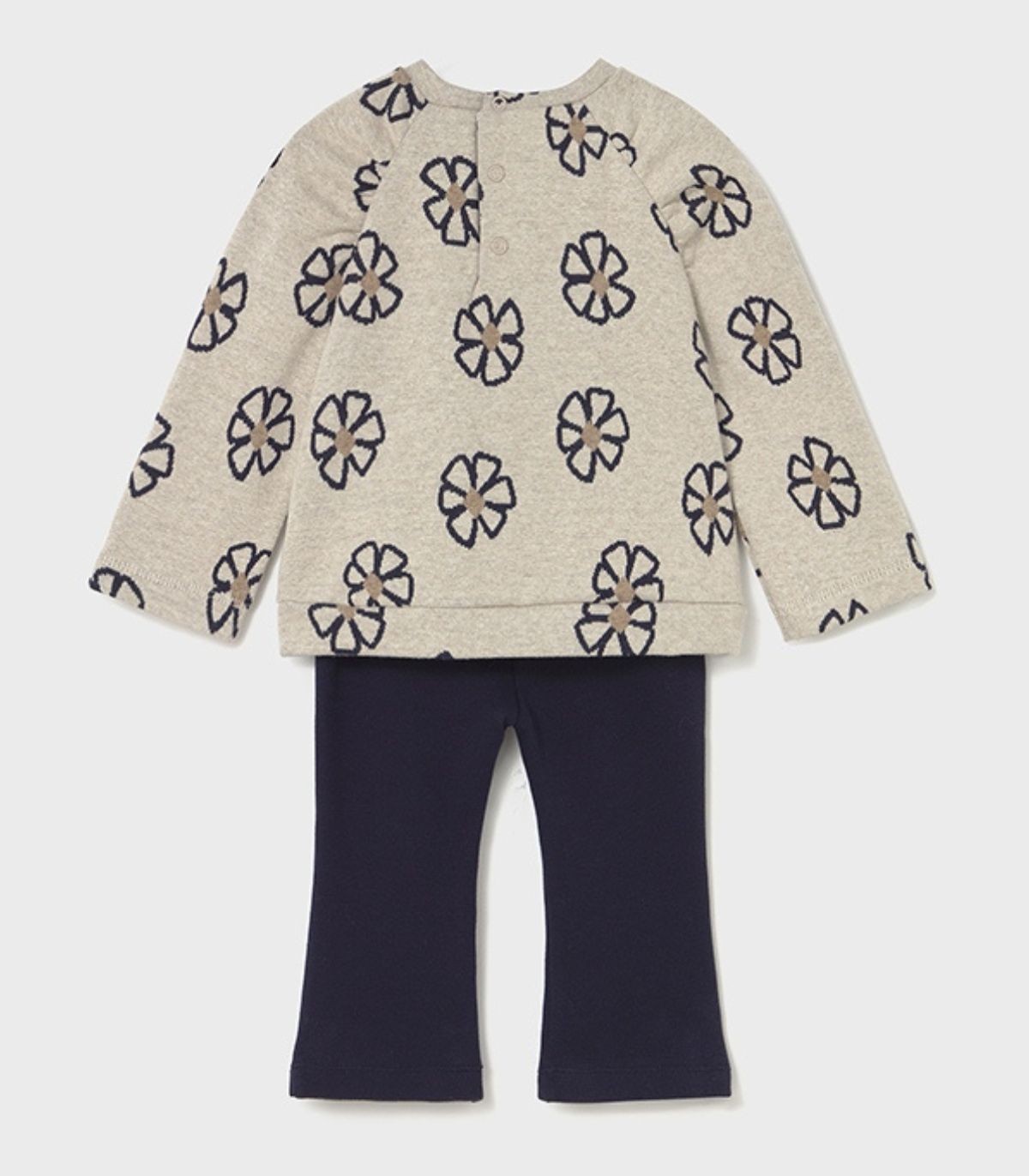 Conjunto de legging con sudadera para niña de la colección otoño-invierno de Mayoral, confeccionado en tejido suave y cómodo, perfecto para los días de la temporada. La sudadera de manga larga y cuello redondo se abrocha en la espalda con prácticos cierres a presión para facilitar la puesta. Como detalle, luce un bonito estampado de flores que le aporta un aire dulce y delicado. A juego, el legging con cintura elástica asegura un ajuste cómodo y perfecto, completando un conjunto práctico y encantador para el día a día.