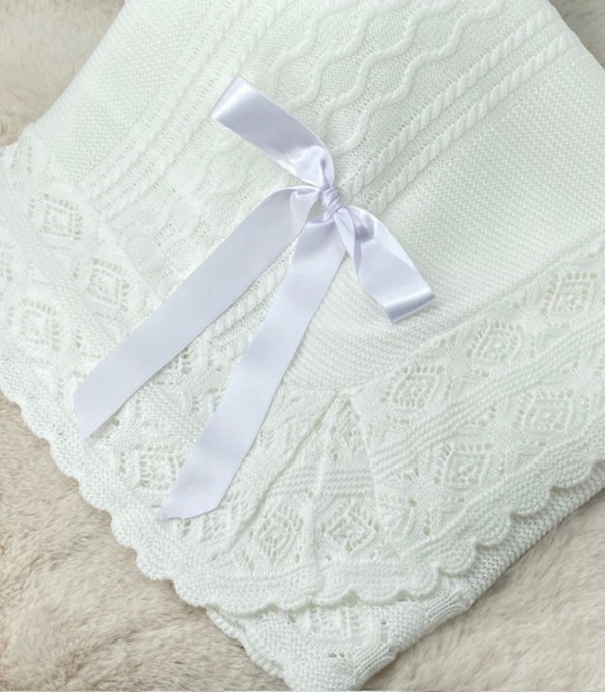 La toquilla chal de invierno para bebés y recién nacidos es la opción perfecta para mantener a tu pequeño tesoro cálido y cómodo en los días fríos. Confeccionada en suave punto tricot en tono blanco y decorada con un encantador volante calado, esta toquilla es una combinación de estilo y calidez que hará que tu bebé luzca hermoso y se sienta acogido.