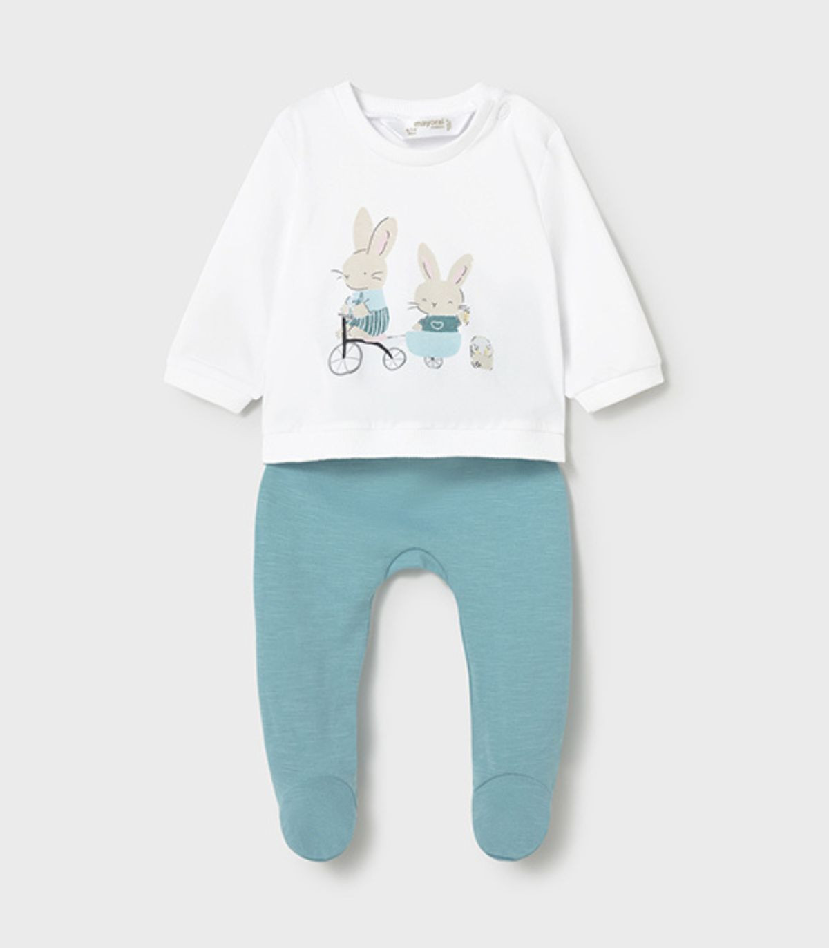 Conjunto polaina y sudadera Mayoral bebé niño turquesa y blanco