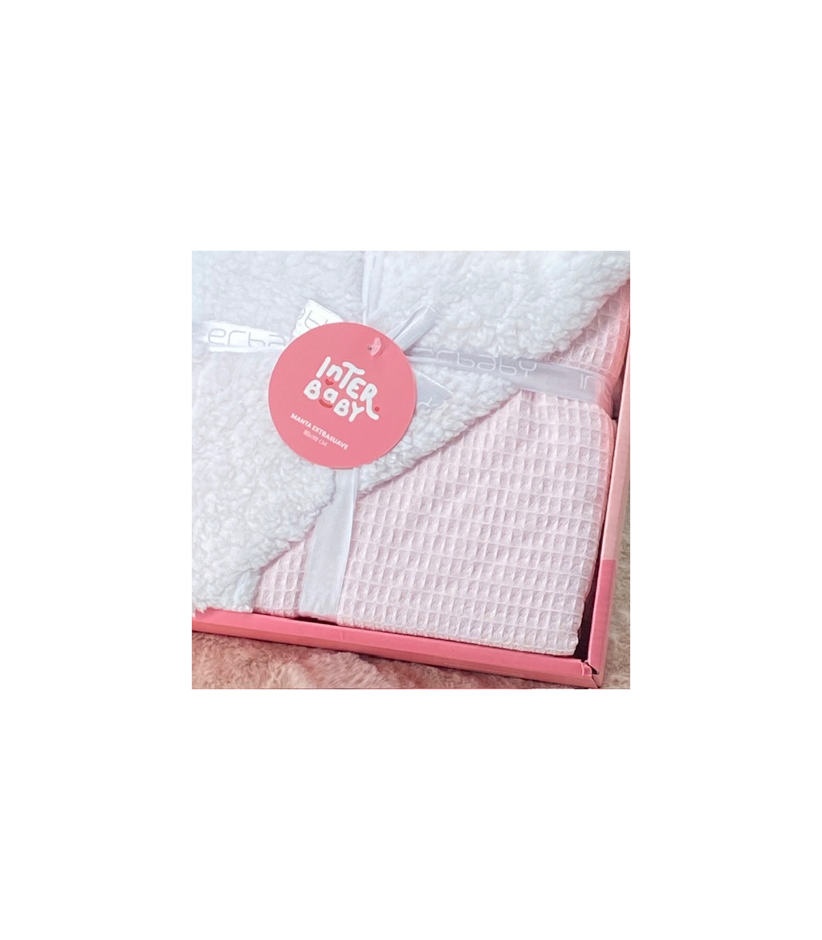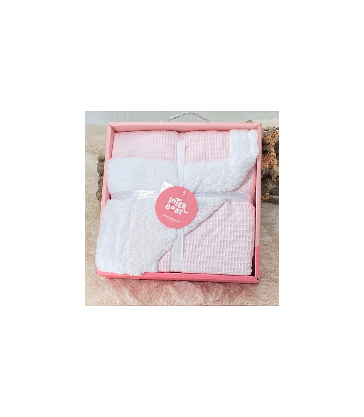 Preciosa mantita en nido de abeja en tono menta que viene forradita en tejido borreguito en color blanco en su interior. Muy calentita y extra suave. Confeccionada en España.